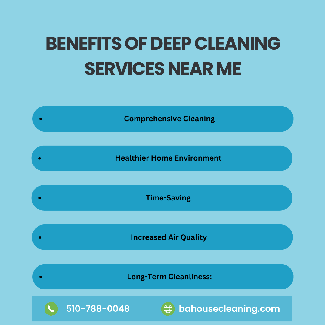Ready to experience the best deep Cleaning near me? BA House Cleaning offers professional, affordable, and thorough cleaning services for your home or office. Contact us today to get a free quote or to schedule your next deep cleaning appointment! Let us help you keep your space fresh, clean, and healthy.